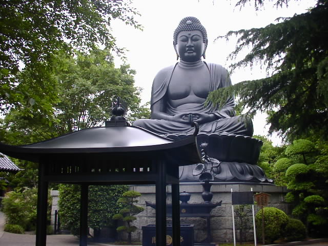地図:東京大仏の位置 乗蓮寺はもとは板橋の仲宿にありましたが、現在の場所に移動しました。 そしてシンボルとなる大仏は昭和52年に完成しました。 大仏の大きさは、鋳物の大仏としては奈良・鎌倉につぐ3番目の大きさで 13mと迫力はかなりのものです。 以前は体内めぐりといい、大仏の中に入り基壇地下に納められた七福神を 拝むことが出来ましたが、現在は立ち入り禁止となっています。 私の中では、子供のころにいつの間にか出来ていた大仏といった感じで 溜池公園につりにきた際に、聳え立つ黒い巨体に驚きました。 材質 青銅製 重量 32トン 座高 8.2メートル 蓮台 2.3メートル 基壇 地上2メートル 地下1メートル |