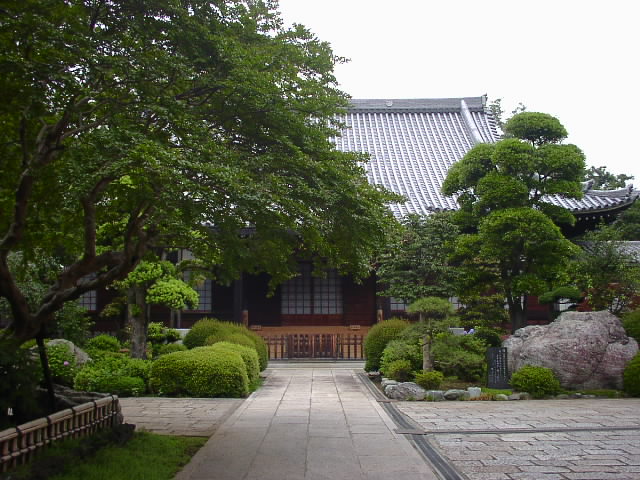 地図:松月院の位置 武蔵千葉氏の祖・千葉実胤(七郎)の居城であった赤塚城と谷津を 挟んだ対山上にあり、開基は寺伝によれば実胤の弟で石浜城主の 千葉介自胤が中興の開基とされ、徳川家康より朱印地40石を寄進された 格式ある寺院です。 また、高島秋帆が徳丸ケ原で日本最初の洋式砲術訓練を行ったときの 本陣でした。院内にある宝物館には、千葉氏寄進状・徳川朱印状など 多数の由緒ある文化財が保存されています。 延徳4(1492)年、自胤は松月院を菩提寺と定め、寺領を寄進しました。 開山堂には自胤の位牌が祀られ、本堂の西側にある墓所には自胤や 比丘尼了雲の石碑があります。 |